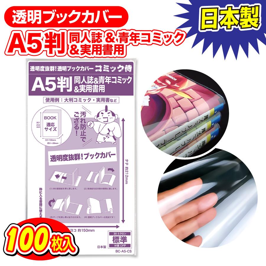 商品追加値下げ在庫復活 日本製 透明ブックカバー A5実用書用 100枚 コミック侍